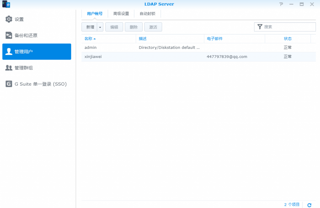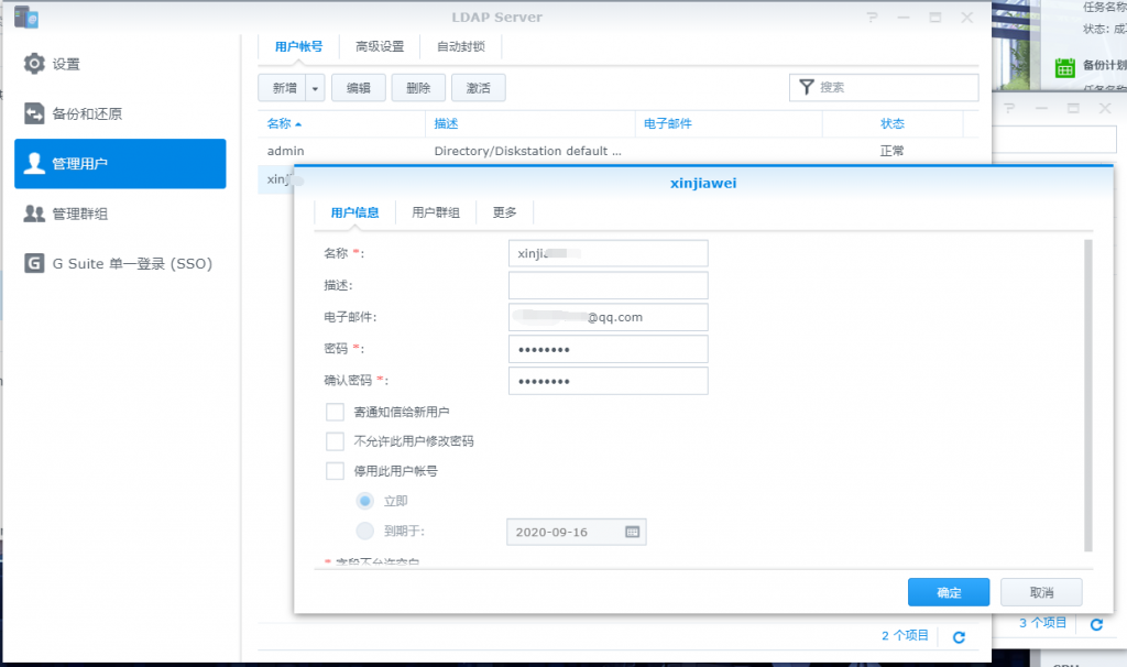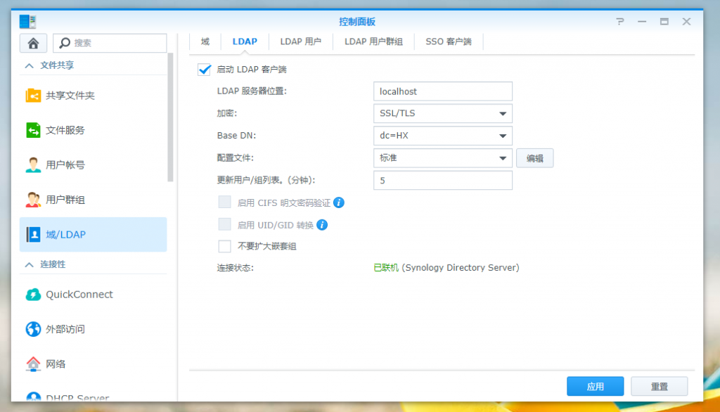 设置LADP用户账号(在旧版本群晖中,此账号与DSM分离)