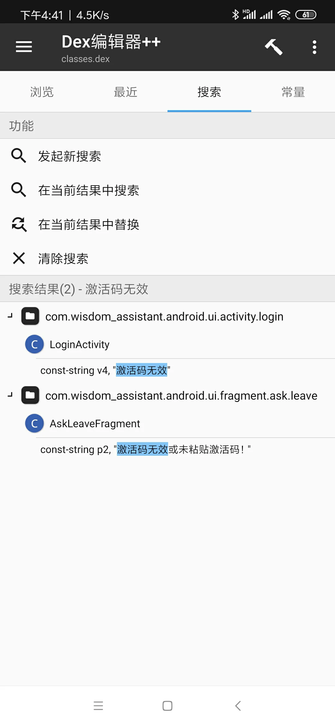 到mt里搜索“激活码无效”,发现在LoginActivity类里。