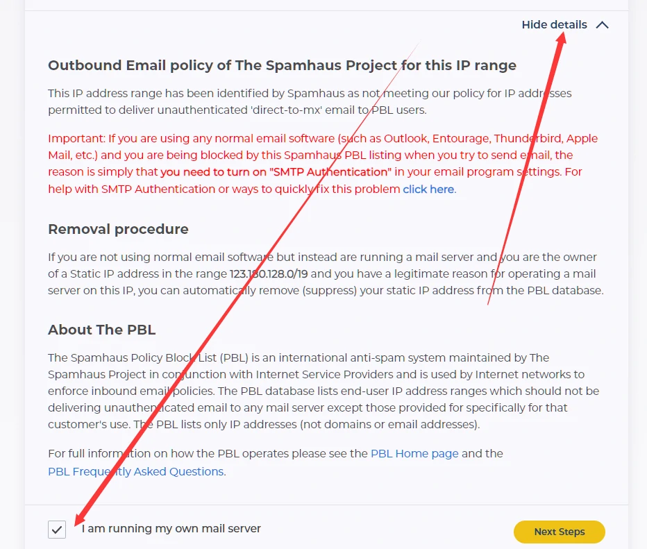 总结一句话,就是我的ip不在Spamhaus可信的列表里,所以被屏蔽了。那么Spamhaus是个啥?