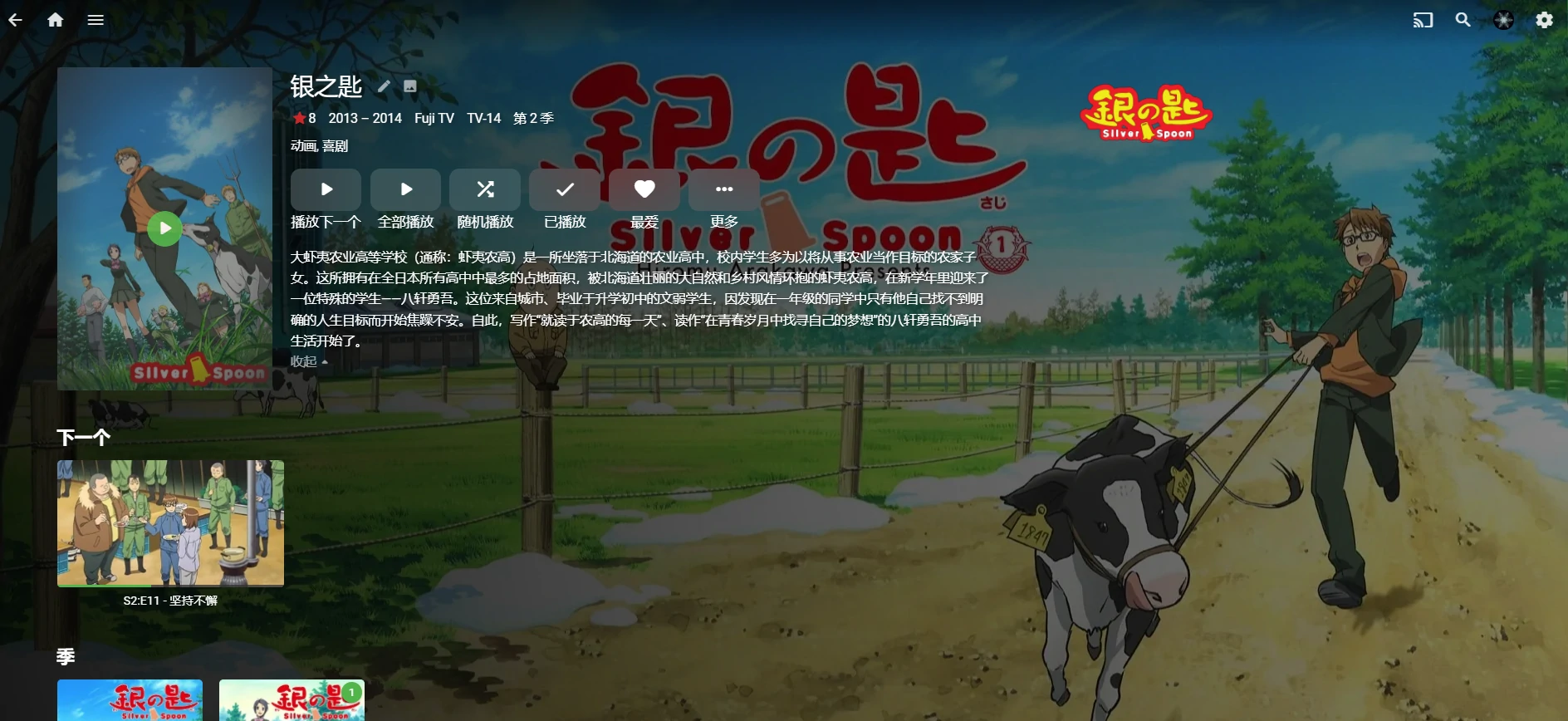 我跨年选择再看一次“银之匙”一季和二季, 真的是一部好番,没有什么智障情节,没有后宫向,描写家里的矛盾,升学的问题,日常生活的迷茫,还有友情,朋友们的事情,淡淡的恋情等,只能说是很有意义的一部番。描写的是我八竿子打不着的农业学校日常生活,但是反应了最真实的东西。